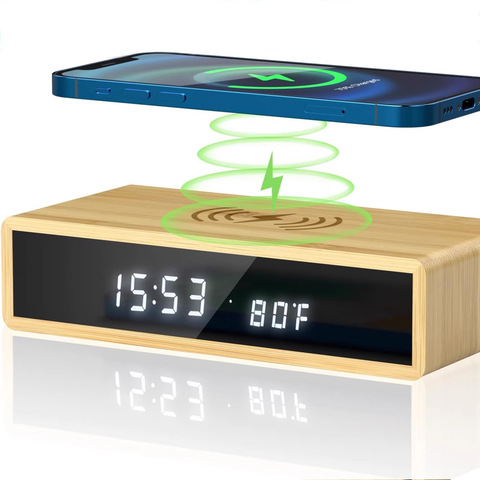 ที่ชาร์จไร้สายและนาฬิกาดิจิตอลตั้งโต๊ะที่ทันสมัย